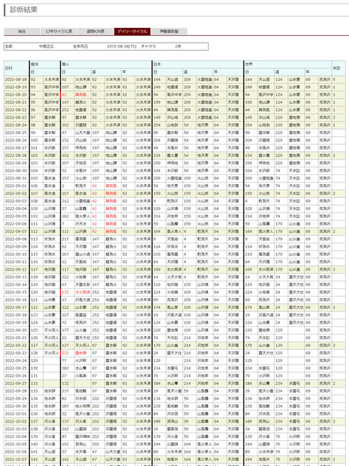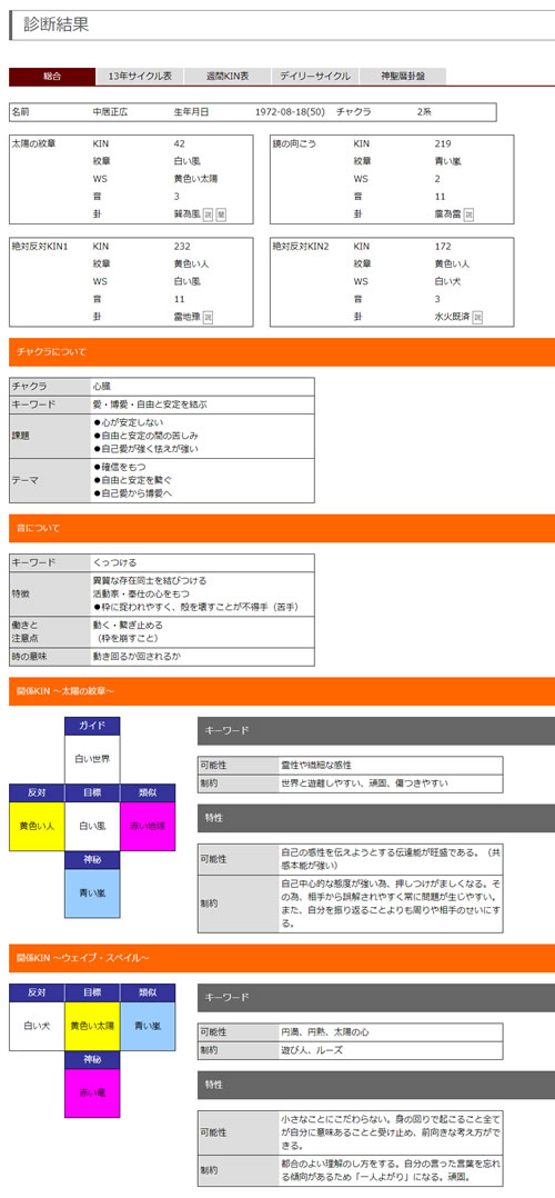 マヤ暦から計算された毎日のKINに対応する卦とコメントを表示しています。このままでマヤ暦を使用したデイリー占いを行うことが可能です。