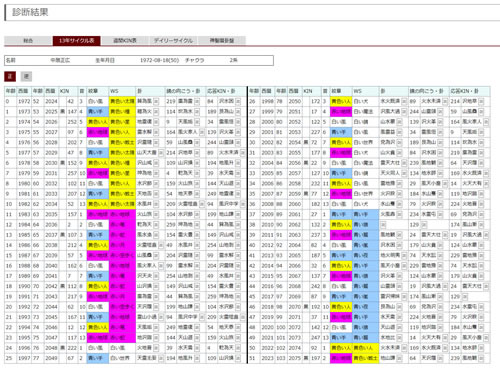 年毎のKINや紋章だけでなく、ウェイブスペル・音・卦・鏡の向こうの卦・応答卦を表示しています。
