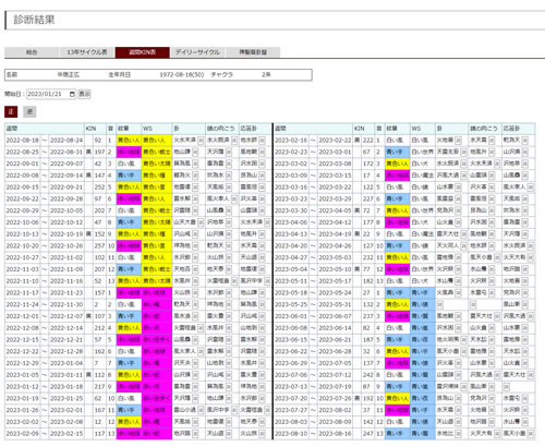 誕生日から7日ごとに区切られたエネルギーの流れを一覧表にしました。